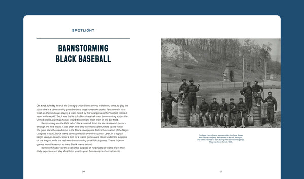 Play Harder comes at a time when the history of Black baseball has become especially relevant—following MLB's recent recognition of the Negro Leagues as major leagues and the effort to incorporate statistics from the Negro Leagues into those for all players. Before Robinson, as Play Harder shows, Black athletes played baseball as far back as the 1800s even before the establishment of the Negro Leagues. But once founded in 1920, the Negro Leagues gave Black Americans an inroad to baseball that would be enduring and profound. The leagues were an instrument of community building during a time when discrimination separated Black people from all white enterprises, including baseball, and they paved the way for racial integration that Black players hoped would come.
